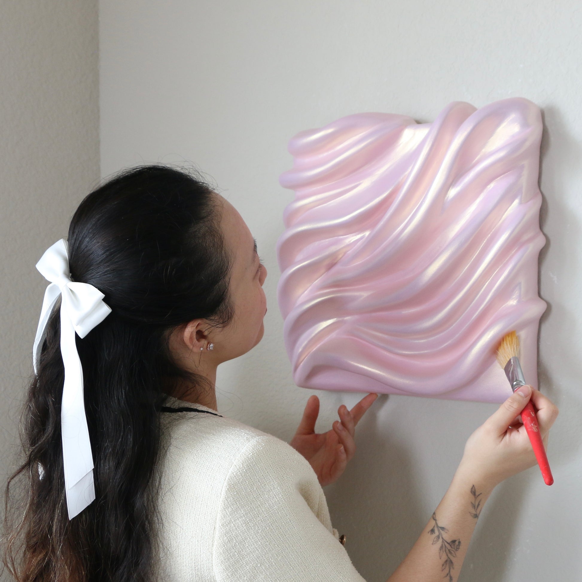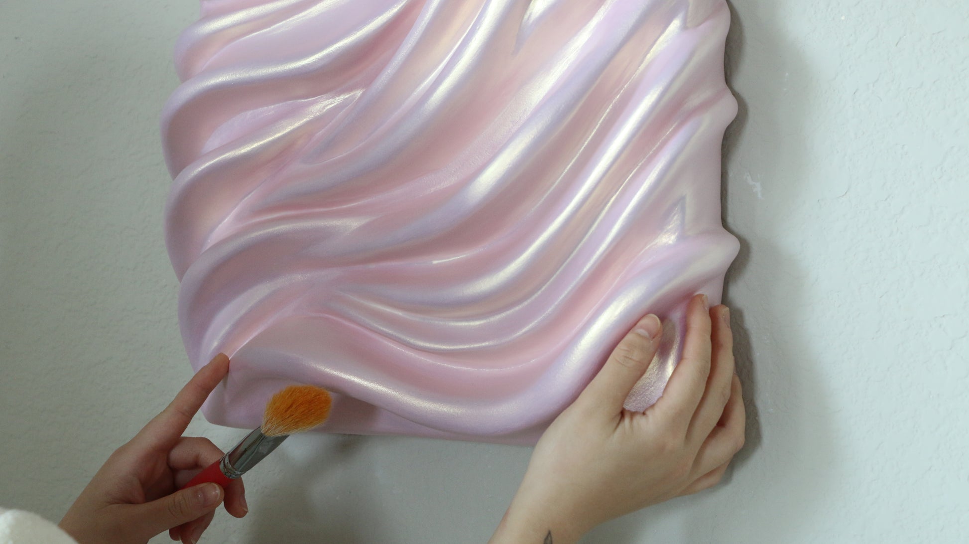 What it's made of: mixed media, drywall mud, plaster, acrylic wall paint, color shift pigment, intercoat, satin finish on a canvas.